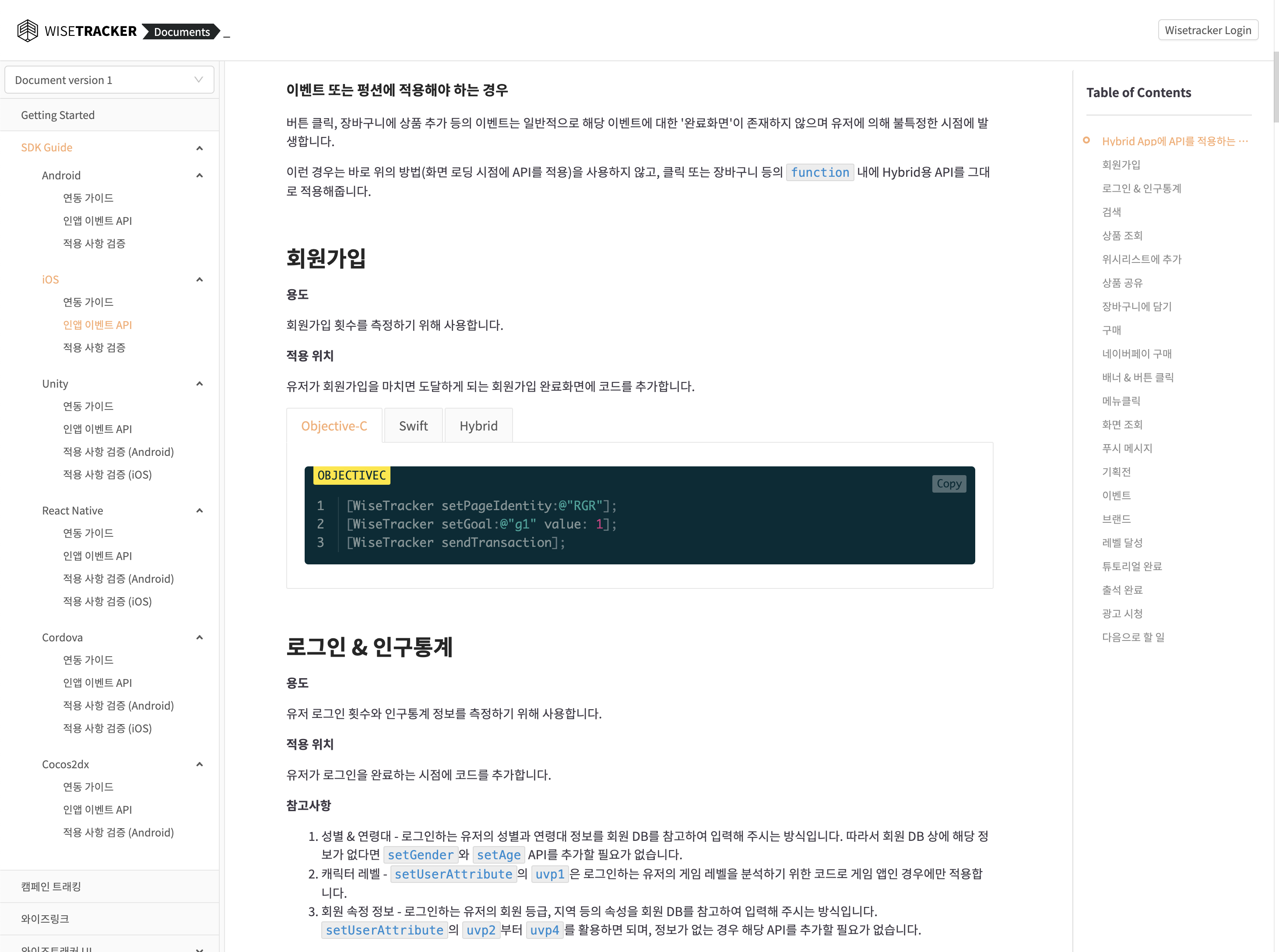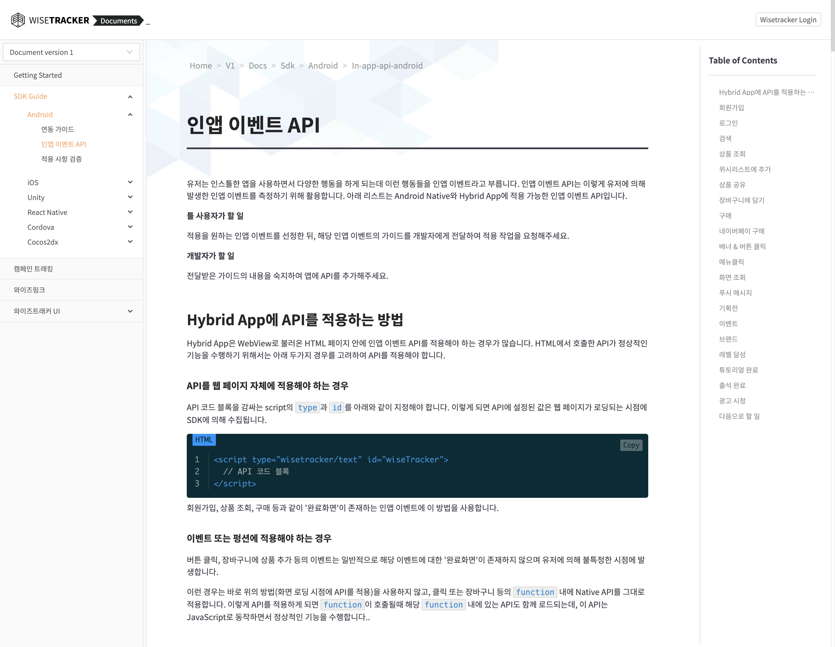 Mobile attribution & Analytics의 서비스답게 각 플랫폼에 대한 연동 방법이 세분화되어야 했고 이를 단순하게 md로 제공하게 되면 생산성이 좋지 않을 염려가 있었습니다.
